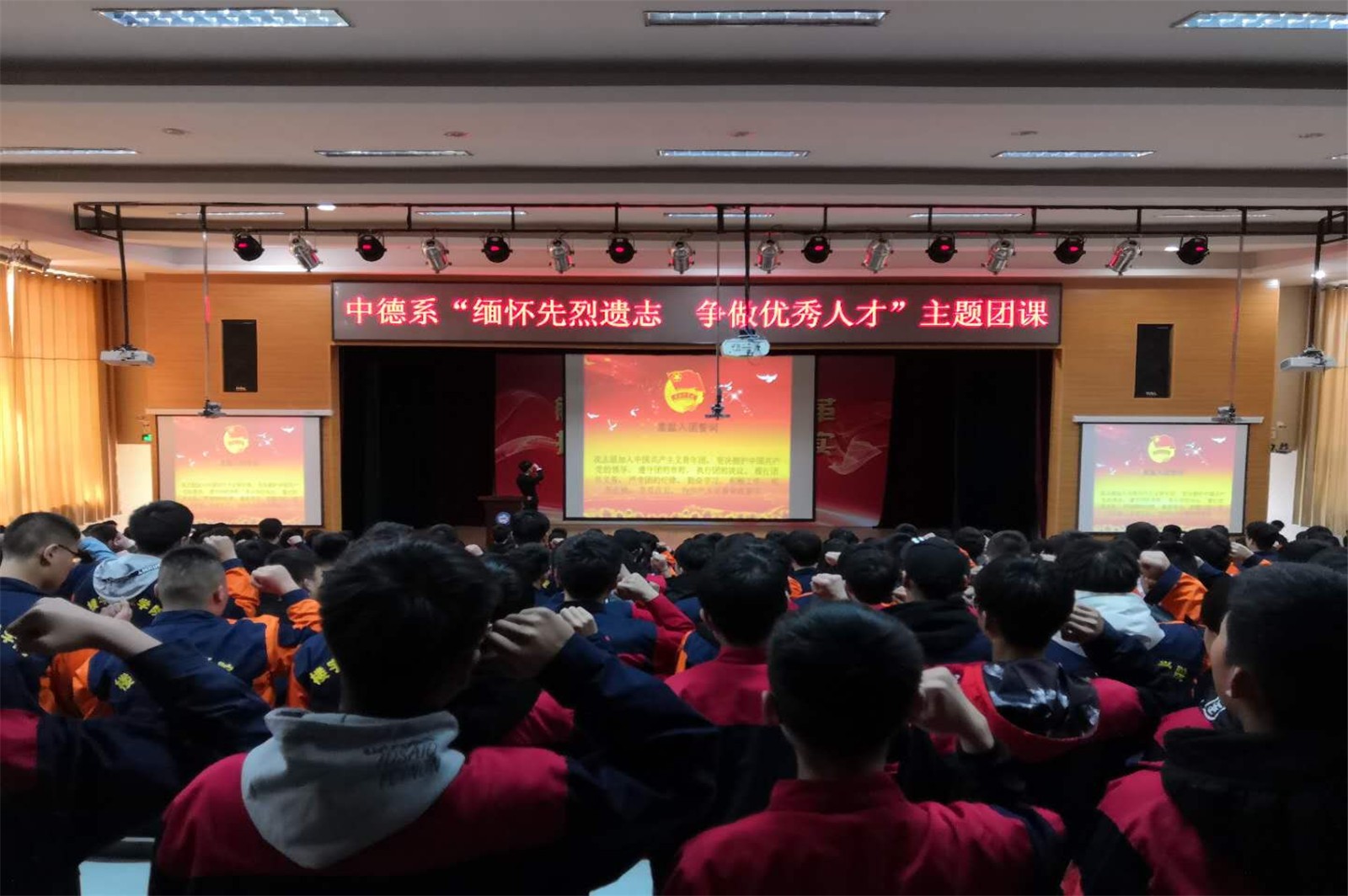 为贯彻落实集团党委书记、董事长高洪雷同志《在振兴鲁商的生动实践中书写人生华章》的讲话精神,引导广大青年甘于吃苦、勇于担当、锐意进取、建功立业,培养具有较高理论修养和工作能力的基层团干部,带领广大团员青年进一步坚定共产主义信仰。4月2日,山东省城市服务技师学院中德智能制造系党总支在学术报告厅开展了“缅怀先烈遗志,争做优秀人才”大型主题团课。