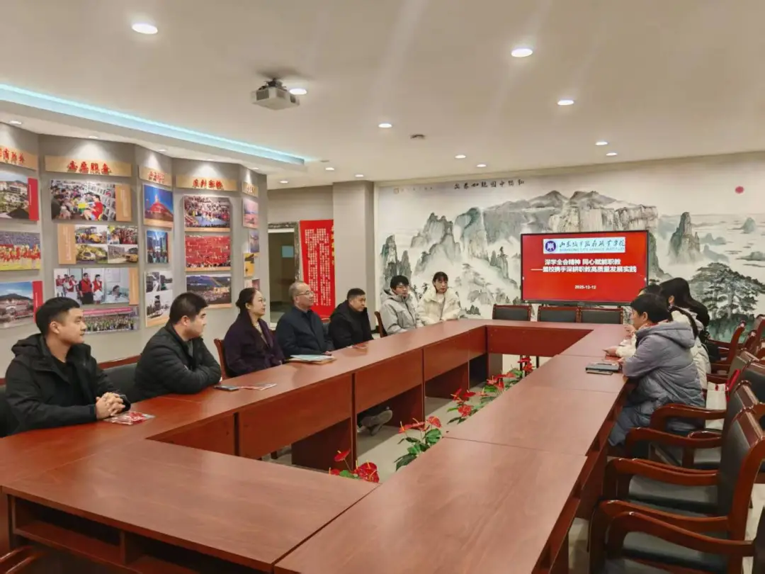 12月12日下午,民盟烟台市委会专职副主委于许文带领高新区民盟综合支部一行13人来到山东城市服务职业学院,开展以“盟校携手 深耕职教”为主题的统战调研交流活动,为校地统战协作、产教融合发展搭建起务实沟通平台。交流中,双方围绕学校专业设置特色、产教融合实践成果、技能型人才培养现状及发展痛点等核心内容展开深入探讨。与会盟员结合自身从业领域与专业优势,聚焦“职业教育服务地方产业发展”“技能型人才培育体系