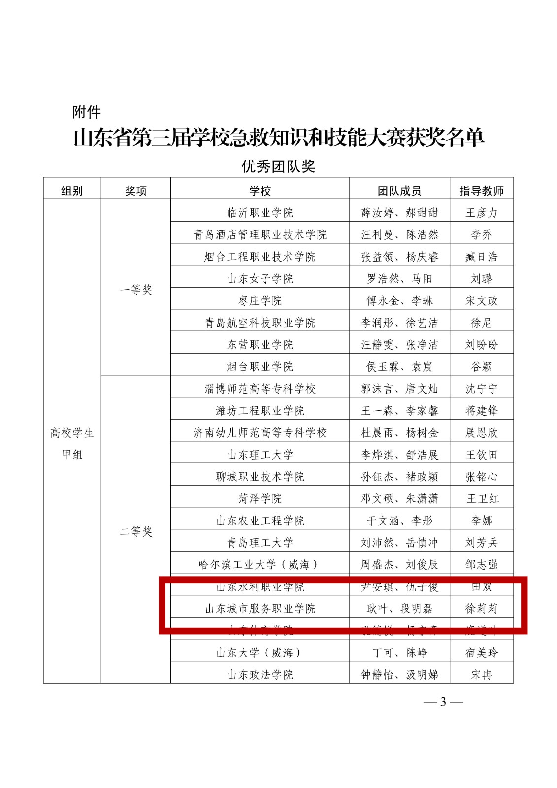 城院学子在山东省第三届学校急救知识和技能大赛中斩获佳绩