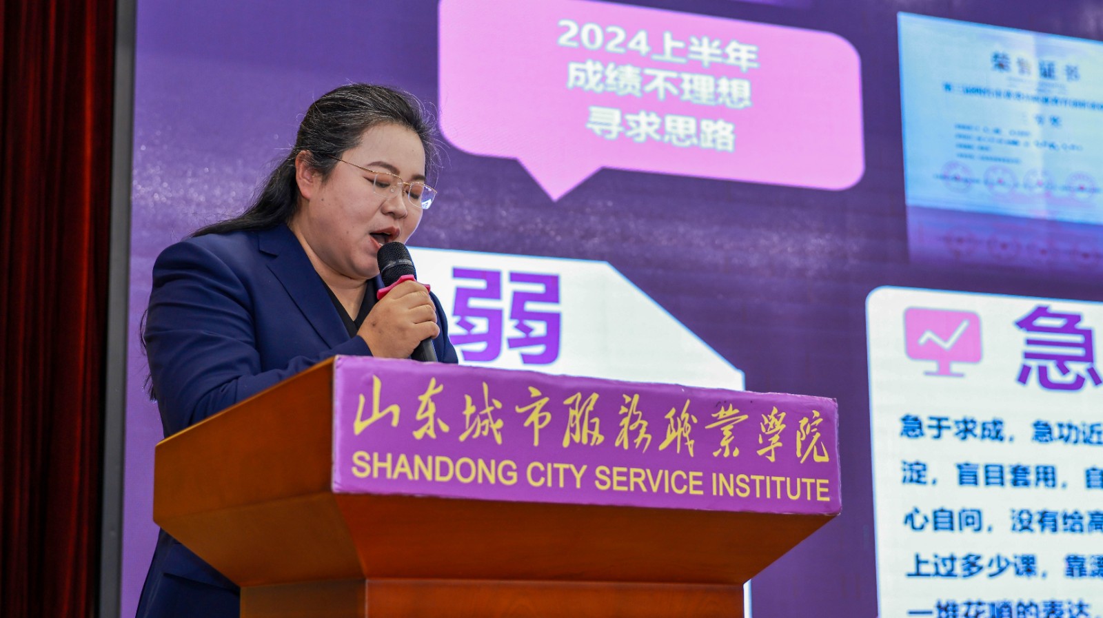 除了竞赛领域的卓越表现,我校教师在专业发展与能力提升的多元路径上也收获颇丰。教师董郭英以“求真务实,厚积薄发”为题,分享了其在日照职业学院访学研修期间的所见所闻、所思所想,为课程建设和教学改革带来了新的启发。教师蔺圣翠结合自身深入企业一线的实践经历,生动讲述了产业技术变革对教学内容的启示,强调了“岗课赛证”综合育人的重要性。教师王晓光则围绕参与的“教师素质提升计划”的国家级培训项目中的所学所获,系统梳理了前沿教育理论与教学实践相结合的思考与反思。三位教师的分享内容充实、角度各异,为全体教师提供了宝贵的成长借鉴。